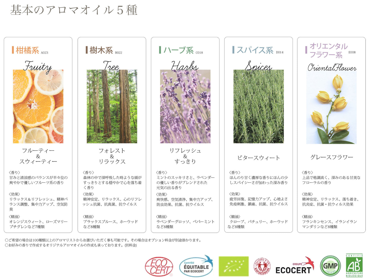 - 基本のアロマリスト5種以外からのご選択の場合は、別途オプションとなります。